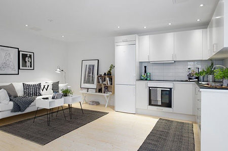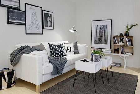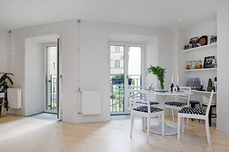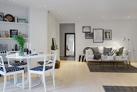 用“大道至簡”這四個字來形容這間公寓,實在是再合適不過了。溫馨舒適而結構緊湊,這間位于瑞典哥德堡的公寓僅僅有48平米,采用了常見的北歐風格,以黑白為主色調,卻又不流于俗套:斑點、十字紋、中灰色的過渡、藝術畫框……各種形式的黑白點綴,簡單的兩色仿佛也能奏響七彩樂章!