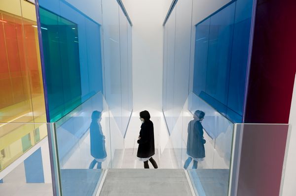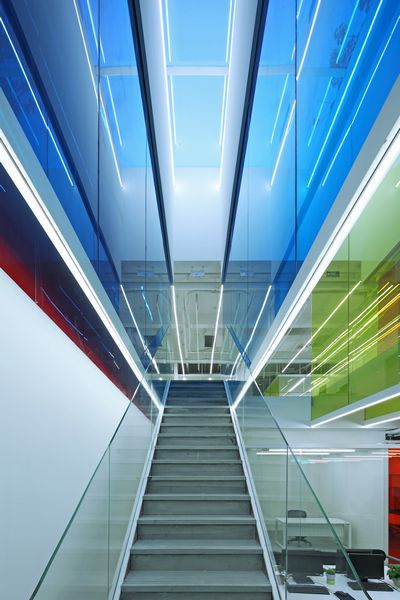 將行走路徑面對或側旁的墻面設計為不同的彩色玻璃。通過人在空間中的移動,觀看玻璃的角度與層數(shù)的變化,顏色的疊加及光線的各種反射,構建出一個無比虛幻的色彩世界。