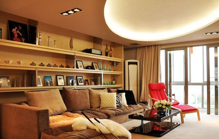 寬敞明亮的客廳散發著青春和活力,粉紅色的單人椅成為休閑時刻的好伙伴!