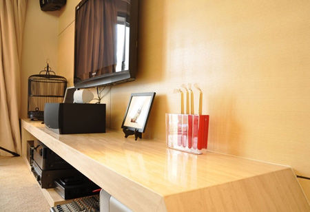 簡單的電視柜設計承載了原木色原有的韻味,搭配上鳥籠仿佛親臨大自然一般。