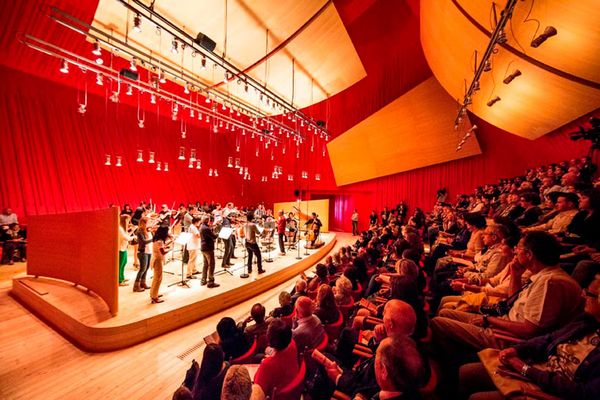 該項目是由renzo piano設計的。該項目被看作是多維數據集,其中最大的是停留在一個看似隨意的斜的一般形式。 30度角的中間量對應的階梯座位,可容納238觀眾。其表演者專用的技術設備,休息室和私人更衣室這些側面主體結構,由鋼架和玻璃走廊連接。