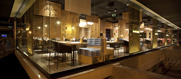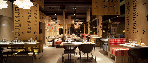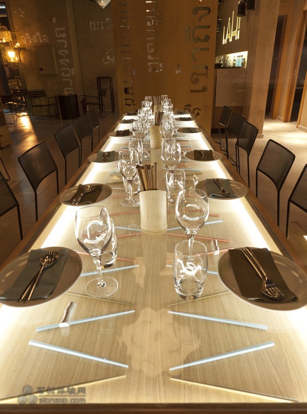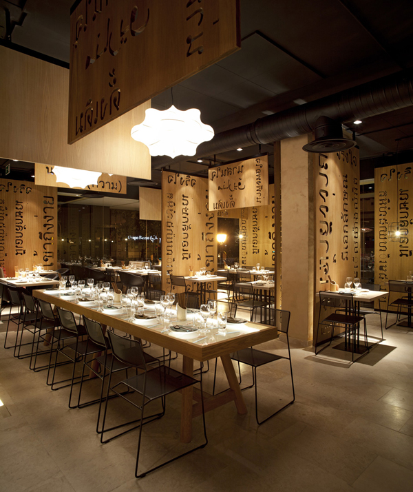 西班牙馬德里LAH餐廳內部空間由IlmioDesign設計。LAH餐廳看起來非常的“豪華”,在結構上卻非常的簡潔,擋板上的文字結合本地文化內涵,傳送著一種文化美。