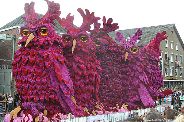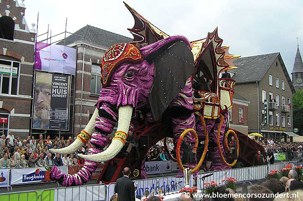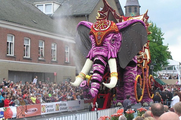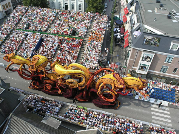 荷蘭Bloemencorso是全球最大規模的、完全由志愿者形成的花車巡游,每年設定一個主題,裝飾用的鮮花須是大麗菊。