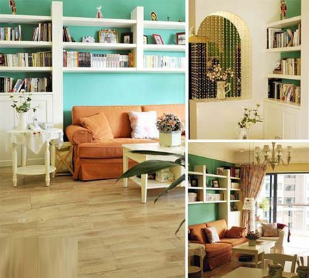 客廳也擺放了大量的書(shū)籍,書(shū)香味彌漫,白色的家具,橙色的沙發(fā),很溫暖。