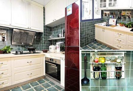 藍(lán)色和白色搭配的廚房空間,有種淡雅自然的味道,細(xì)節(jié)裝飾利用的很好,很節(jié)省空間。