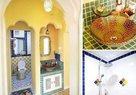 洗漱臺(tái)和沖涼房分開(kāi),頂部墻面的弧線(xiàn)很漂亮,裝修的很溫暖,很藝術(shù)。