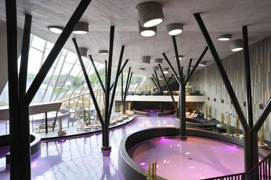 Orhidelia 健身中心是Enota 建筑設計事務所過去幾年在Terme Olimia 溫泉度假村設計項目中的第三個項目。由于溫泉資源十分有限,因此每當設計一座新的溫泉勝地時都適當遵循一種設計理念,就是盡量不干擾現有的自然景觀并使建筑設施與美麗的自然環境相融合。