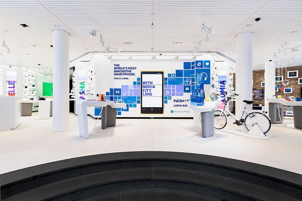 諾基亞赫爾辛基旗艦店,由創意合作團體 Sundae Creative 設計。 Sundae 是一個總部設于倫敦的創意合作團體,由建筑工作室 EvansLundin 和數碼設計工作室 Dead Pixels 組成。