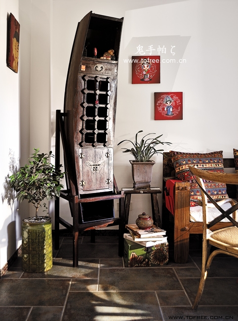 業主入住后一直懶得動,拍照前我催她去弄幾個畫她也沒空,只好隨便先在墻上貼了輕飄飄的不怎么適合的將就著用,等拍完看到照片后告訴我她跑去買了10幾個框打算掛滿老照片,氣得我想揍她,每次看到她就哭啊鬧啊說遺憾啊,痛恨她啊,嚇得她只好說:“你不要傷心了,要不我把那些鏡框都收起來吧。”我說:“算了,你還是掛吧,但是我恨你。”