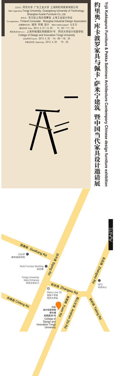 由世界著名家具設(shè)計(jì)大師約里奧。庫(kù)卡波羅與建筑設(shè)計(jì)大師佩卡薩米寧(無(wú)錫大劇院總設(shè)計(jì)師)合作的家具與建筑展將在同濟(jì)大學(xué)創(chuàng)新設(shè)計(jì)學(xué)院工場(chǎng)(阜新路281號(hào))舉行。
