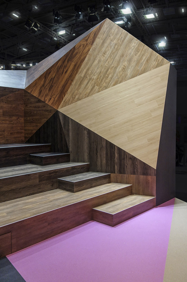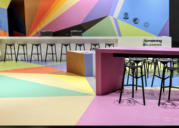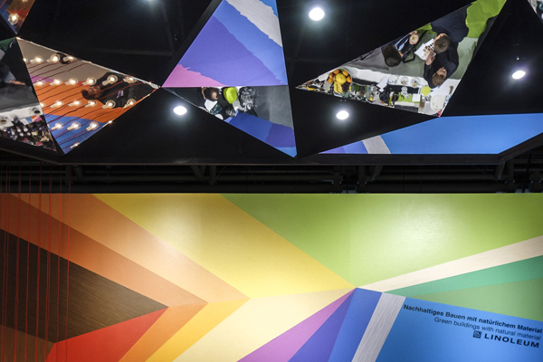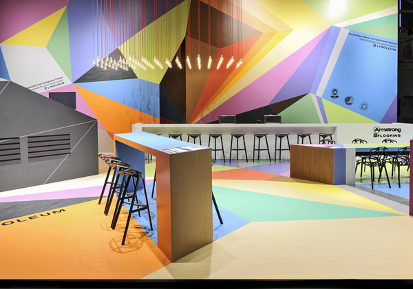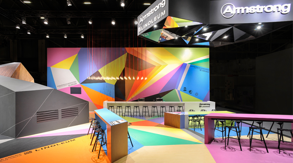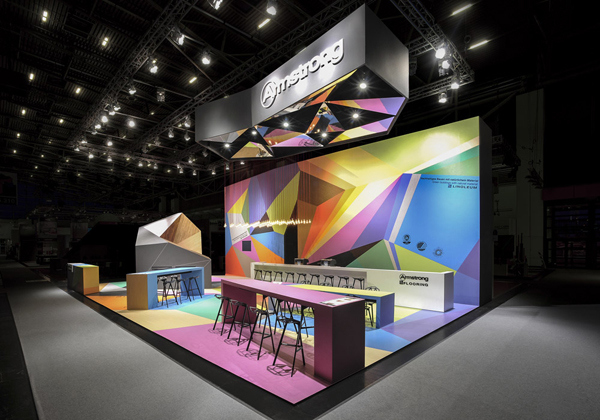 慕尼黑建材展 (BAU) 是世界 領先的建筑行業貿易博覽會。在出自德國設計公司 Ippolito Fleitz Group 之手的展臺中,美國地板廠商 Armstrong DLW 突出展示了其亞麻地板和乙烯基地板兩種產品。客戶希望借助優秀的展臺設計向參觀的建筑設計師推薦其新的產品系列,包括木紋板和“Colorette” 系列,其特點是高強度以及豐富的色彩。