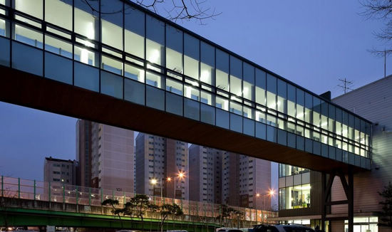 兩個大樓正面相對中間隔著一個45米的停車場。一個大樓是婦產科醫院住房,有20個床位,另一個是存儲倉庫。D·Lim Architects翻新這兩個建筑,由一個40米長的跨橋連接。倉庫是一個低成本的購物中心是復合的聚板。