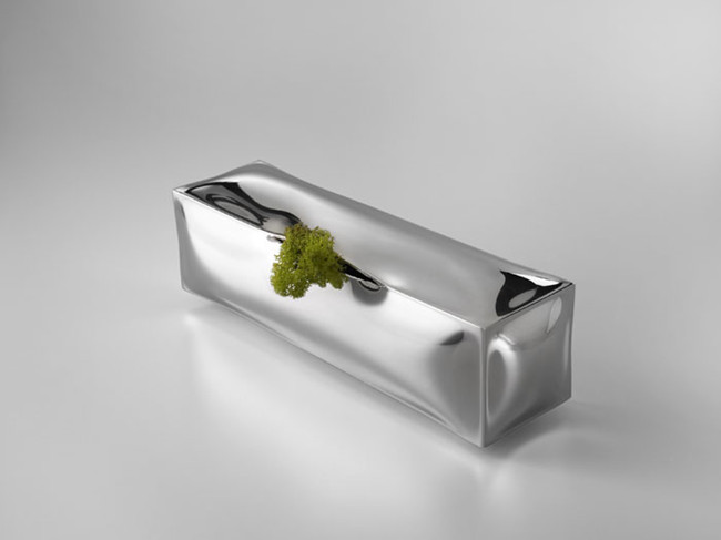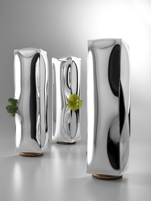 來自意大利米蘭的4P1B工作室利用水在結冰時體積會增大的原理設計了一系列金屬鍍銀花瓶。