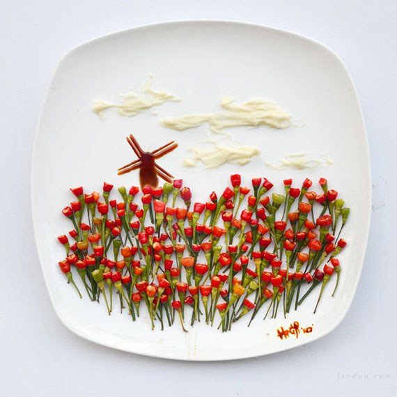 馬來西亞藝術(shù)家、建筑師 Hong Yi(又名Red)最近進(jìn)行的一個(gè)叫做“31 days of creativity with food”的計(jì)劃。