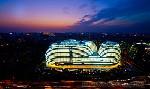Galaxy Soho項目是4幢外觀為白色的鋁帶和玻璃環(huán)繞的大樓,于去年10月份完工。它是扎哈-哈迪德設計的第一個購物中心項目。