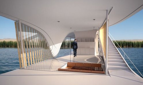 陽光照進漂浮住房,綠色環(huán)保而又令人愜意