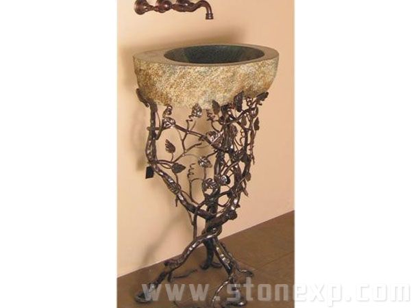 天然石材與鐵藝結(jié)合的特色洗臉盆