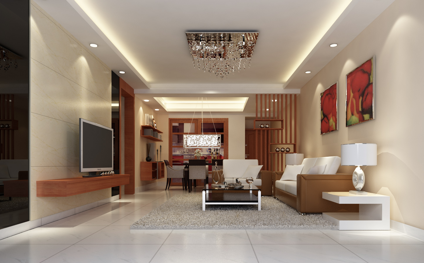 客廳是家人和親友相聚的地方,最需要營造出活潑、融洽的氣氛。圓形屬陽、是動態的象徵,所以圓形的燈飾、天花造型、以及裝飾品具有引導溫馨、熱鬧的氣氛。