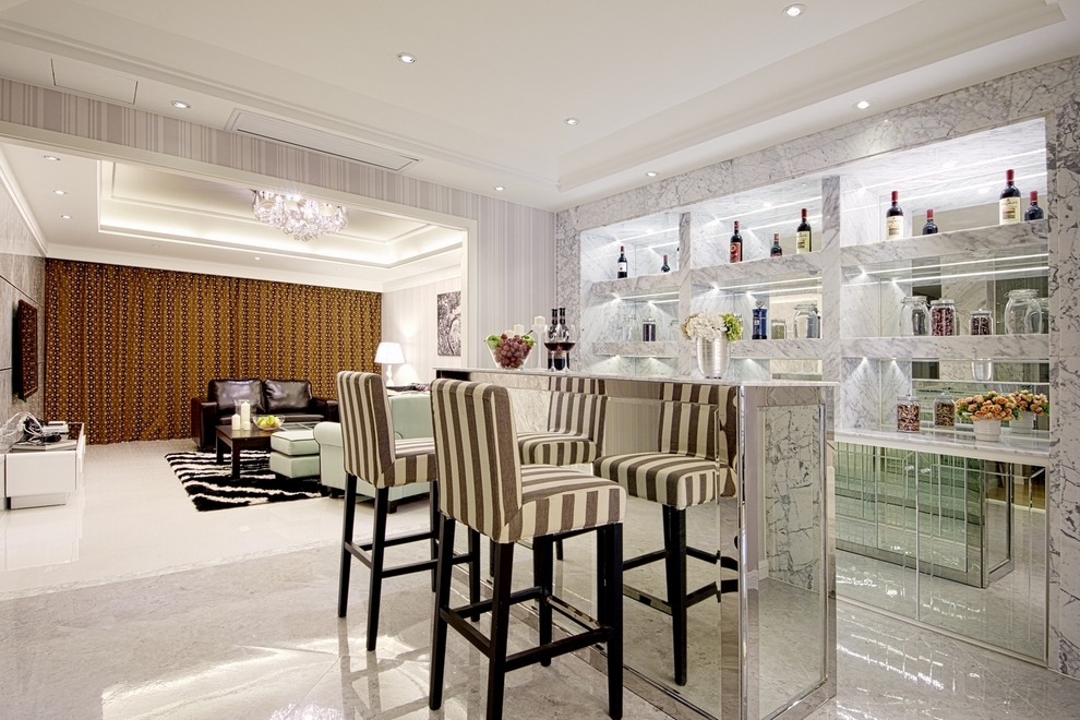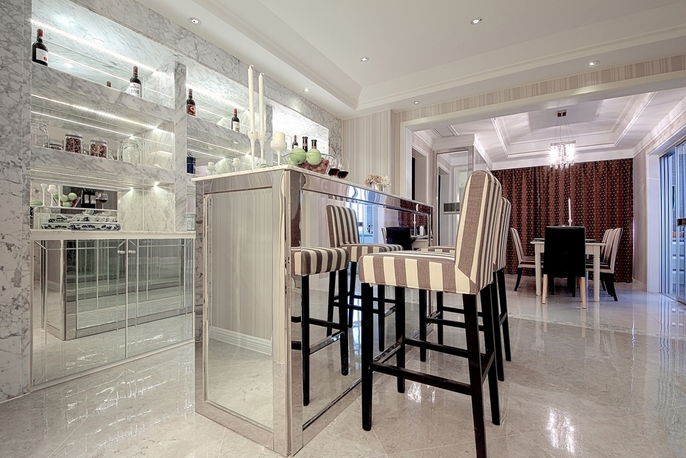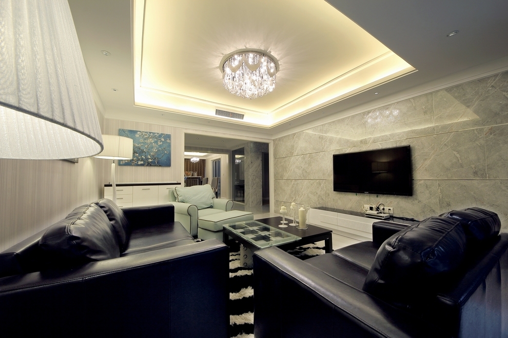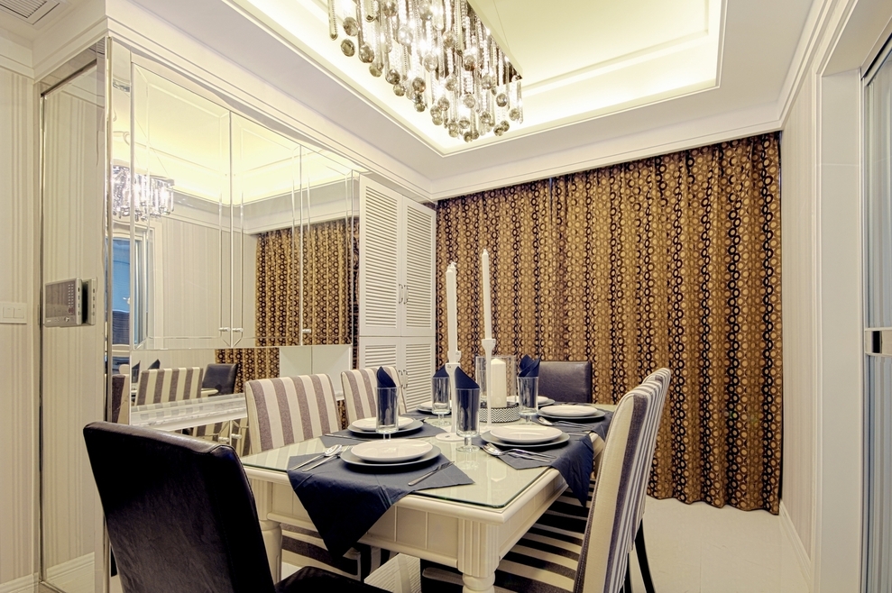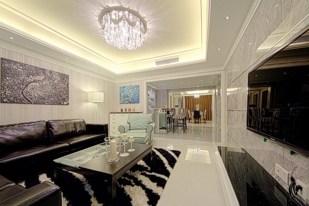 這間鉆石光芒現代公寓的設計方案主要是以現代風格為主,營造出舒適愜意的氛圍,整體運用灰白黑為主的中性色調,在設計客廳電視墻的時候我們沒有刻意的去做過分的造型,只是選擇一塊石材來做它,但是我們選用了不銹鋼條來做細節,主要是為了和屋子里各種材質、色調和造型形成統一。為了保證很好的統一性,客廳和餐廳的吊頂造型是完全一樣的,都是簡潔現代的感覺。但是簡潔不等于簡單,其實看起來簡潔的造型里面,線條層次還是比較豐富的,有比較強的時代感。整個屋子的材質偏冷居多,我們為了中和就選用暖色的T5安裝在吊頂的燈槽內,用來制造溫暖的感覺,在加上墻紙軟化墻面的效果,溫潤感就出來了。更讓回家都變成一種期待。