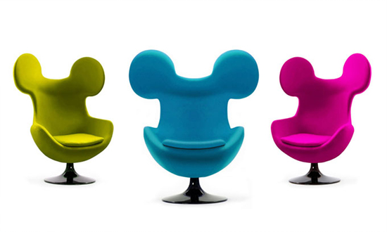 設計師把椅子和米奇老鼠的耳朵結合, 設計了這個Mickey的椅子, 很有創意idea, 給家庭生活增添更多創意元素和樂趣, 特別是鮮艷的顏色讓周圍也更加絢麗多彩。