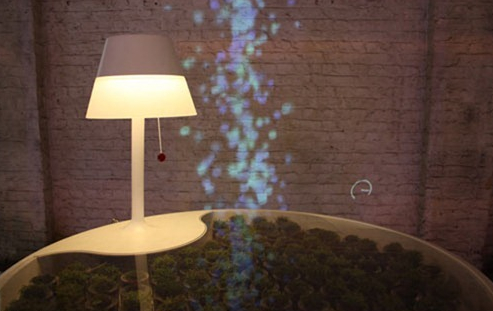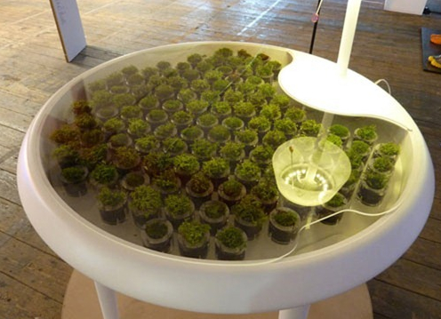在倫敦設計節上,劍橋大學的科學家和藝術家共同設計的這款純生態的環保LED桌燈,這款燈充滿綠色生態感覺,和簡約時尚LED臺燈組成,而且成型的桌子 上,是由一塊完全透明的玻璃桌面,下面空間種植著包括草本,苔蘚或者藻類植物,是靠著這些植物產生的能量被收集起來,轉化為電能后供給桌上的LED臺燈, 而LED臺燈的照明光線部分也能促進植物的光合作用,兩者相輔相成,展示出一種自然和諧的美好。