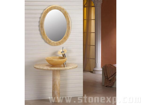 簡單描述:此組洗臉池的整體構造都是由天然石材精心打造,加上洗臉池上的化妝鏡鑲上同種石材的邊框,使得整體美觀,大方,突顯尊貴無比。