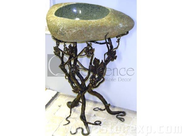 簡單描述:此組洗臉池是由天然石材的面盆和藝術的鐵架相結合而成,石材與其它材料的完美結合打造出別致、藝術的效果,令人神往