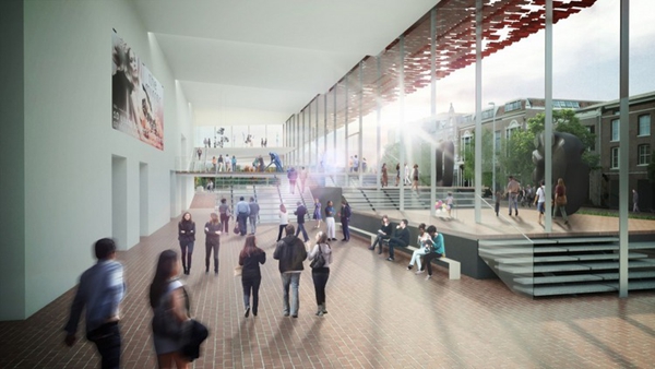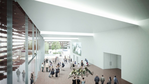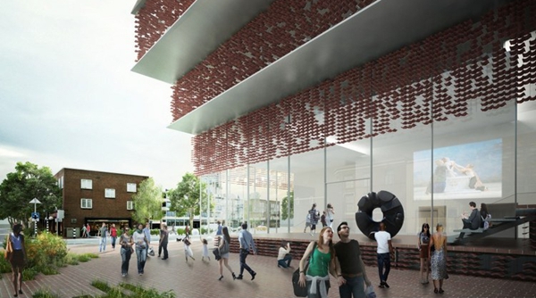 公共街道連接了萊茵河和阿納姆市區(qū),博物館的永久收藏展區(qū)位于三樓,臨時展覽區(qū)位于最高層。內(nèi)部展廳并沒有采用傳統(tǒng)的白色方形房間布局,而是直接由展覽的需求定制,融合藝術(shù)品、游客和阿納姆這座城市本身的需要進行設(shè)計。兩外,博物館和電影劇院也以這個文化館為中心呈環(huán)狀設(shè)計,使各個功能區(qū)在整體上有一個貫通性。