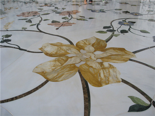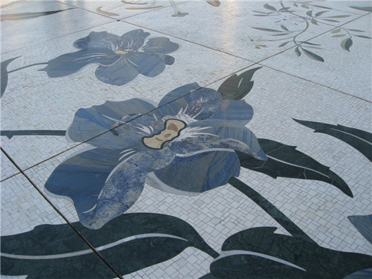 石材拼花在現(xiàn)代建筑中被廣泛應(yīng)用于地面、墻面、臺(tái)面等裝飾,以其石材的天然美(顏色、紋理,材質(zhì))加上人們的藝術(shù)構(gòu)想,拼出一幅幅精美的圖案。