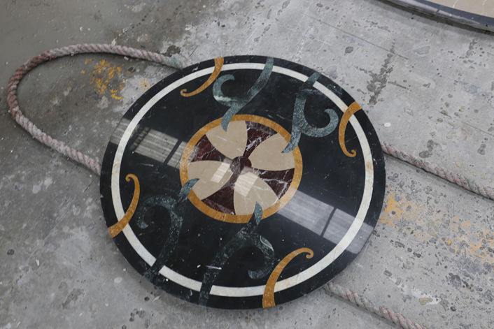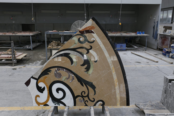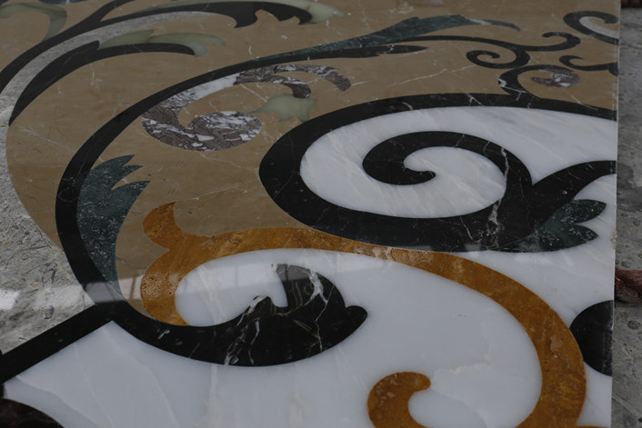 環球石材某貴陽項目是一項規模龐大的城中村改造工程,改造建成后將成為貴陽主城占地面積6000畝,總建筑面積560萬方的罕見大盤。近日,該項目藝術中心的部分石材裝飾產品陸續出爐,其中這套拼花產品應用在第八層R區空間的兩頭。由環球石材出品的水刀拼花產品精細美觀,拼接縫隙可控制在1mm以下。 【水刀機】起源于美國的高壓水射流切割技術,最初應用于航天軍事工業,其冷切割不會改變材料的物理化學性質。