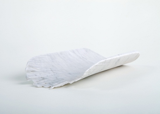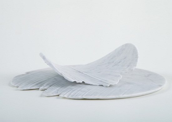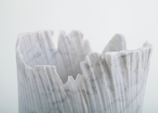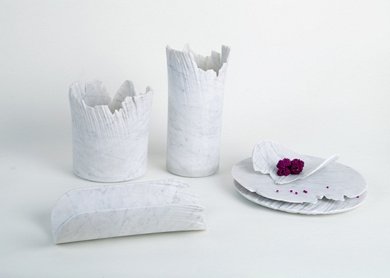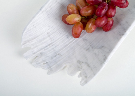這是以色列設(shè)計(jì)師采用卡雷拉大理石材料制成的Monolith系列盤子和容器,他的設(shè)計(jì)靈感來自于水對石材的沖刷侵蝕雕刻。不同的流水造就不同的石材形狀,這些桌面擺件就是用工業(yè)水射雕刻的方式創(chuàng)造。在其表面上有著大理石自然侵蝕形成的獨(dú)特紋理效果。