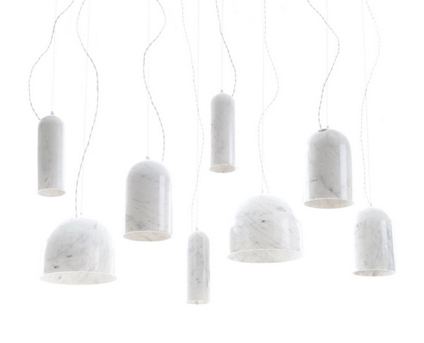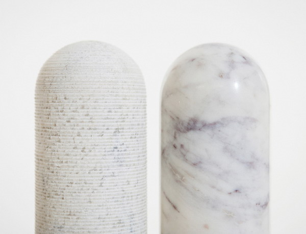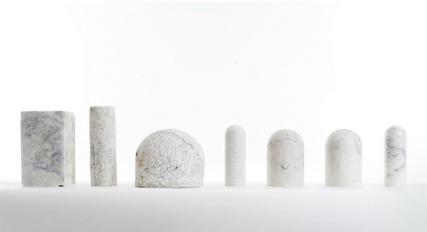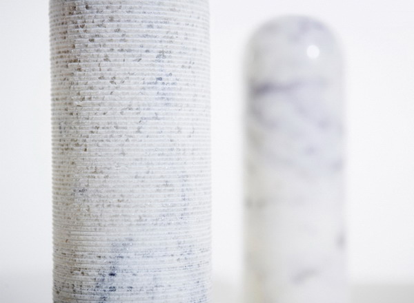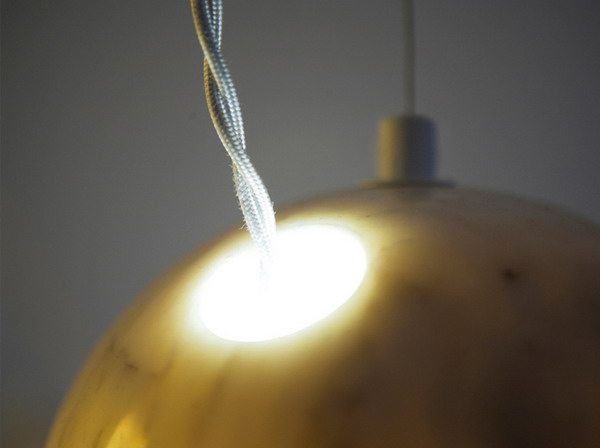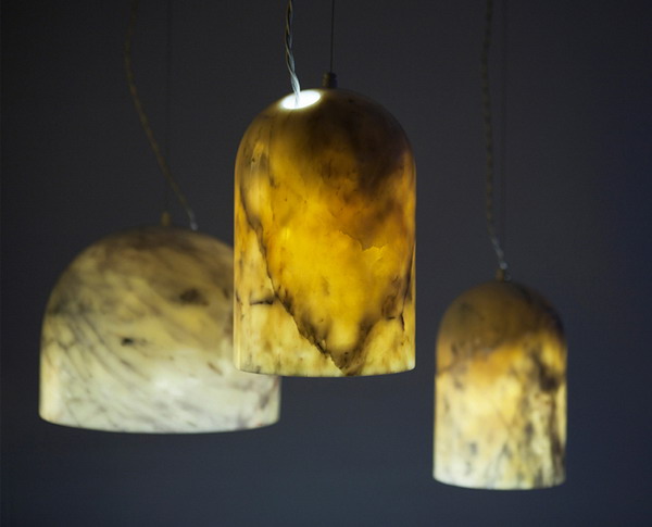 在這一系列家具產品中,設計師利用傳統工匠的技術和知識,用薄壁大理石制作了一款名為“石礦”的燈具。手工打磨的大理石片燈罩外部光滑內部粗糙,為燈具增添了豐富的質感同時也向使用者描述了石料的生產過程。這款燈具利用天然石材半透明的特性制造出了一種朦朧的燈光效果,內部燈泡被點亮之后,石材表面上的紋理也顯現出來。