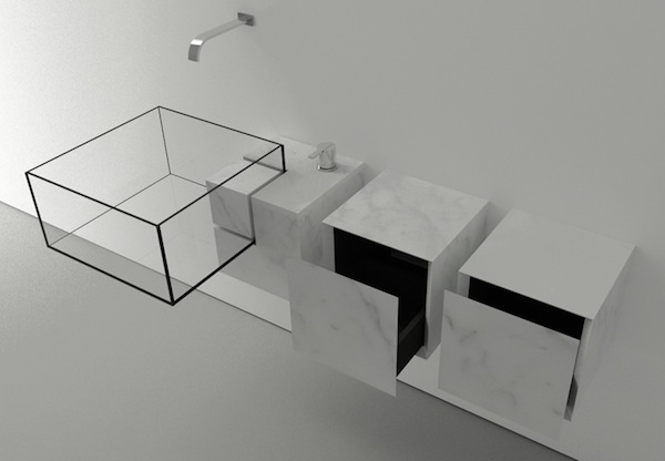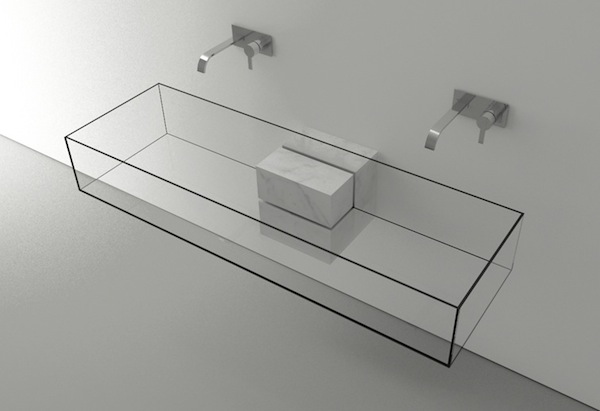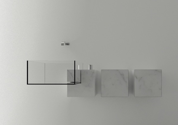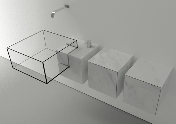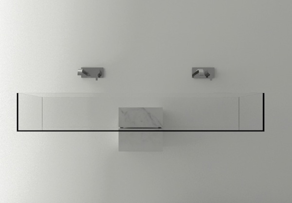 Kub是由來自米蘭的保加利亞建筑設計師Victor Vasilev設計的一系列洗手盆,為了達到晶瑩剔透的效果,設計師采用超白玻璃洗手盆和白色大理石臺面。