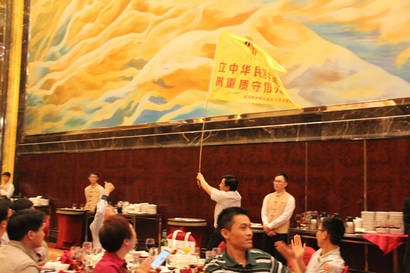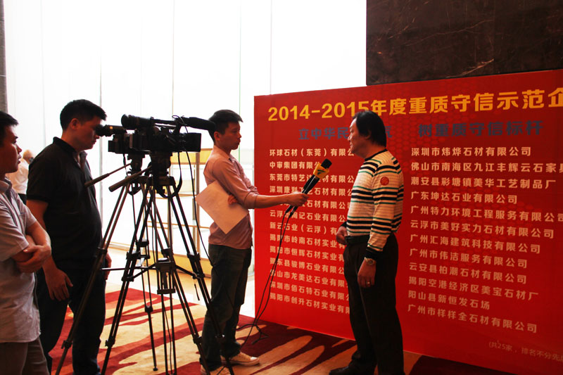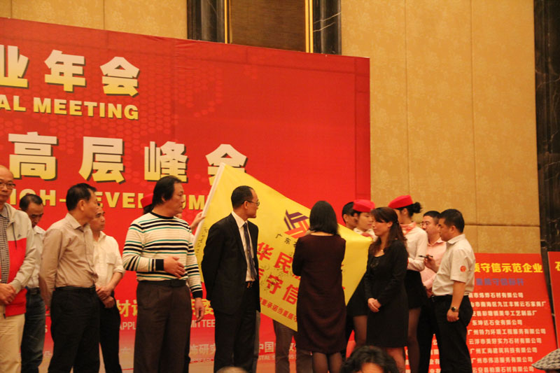 會議第二項內容是對過去一年重質守信會員企業進行表彰,在全體參會嘉賓見證下,環球石材(東莞)有限公司等25家獲得《2014-2015年度重質守信示范企業》稱號企業負責人依次走上主席臺,對著“重質守信示范企業”旗幟許下莊嚴承諾,表示將在石材行業中以重質守信為己任,為振興中華民族工業而奮斗。大家同聲許諾,場面非常感人。