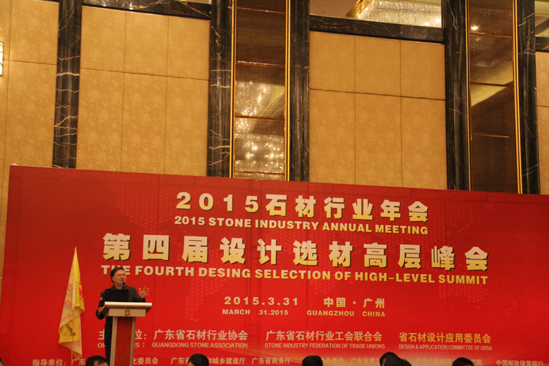伴隨著男女聲主持人獨特開場白,2015年3月31日,《2015石材行業年會暨第四屆設計選材高層峰會》在廣州香格里拉大酒店一樓北江廳隆重舉行。