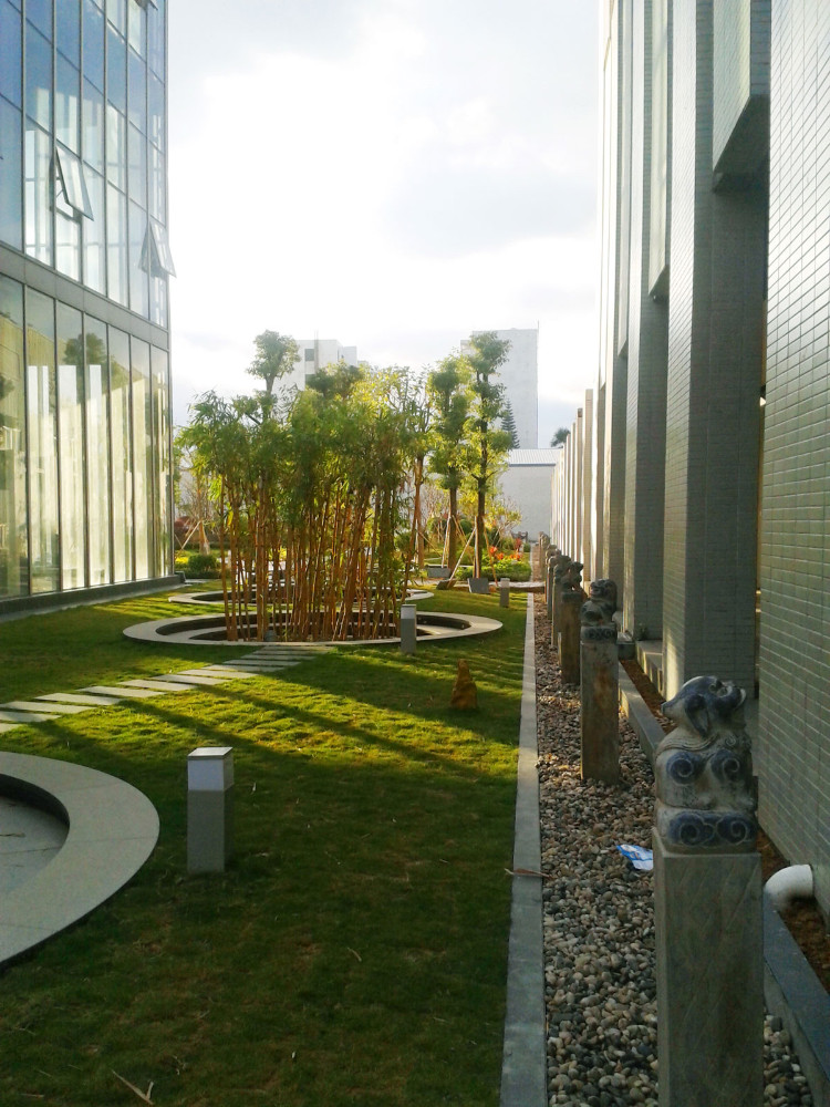 設(shè)計(jì)理念:最初的構(gòu)想是“讓石材回歸自然中”。石材是一種古老的建筑材料,由于它的天然特性,經(jīng)常能給人帶來深厚凝重的文化感、歷史感。在創(chuàng)意園區(qū)中,石材是我們的主角,如何把石材不刻意地用得恰到好處,同時體現(xiàn)石材文化?這是設(shè)計(jì)需要解決的問題。