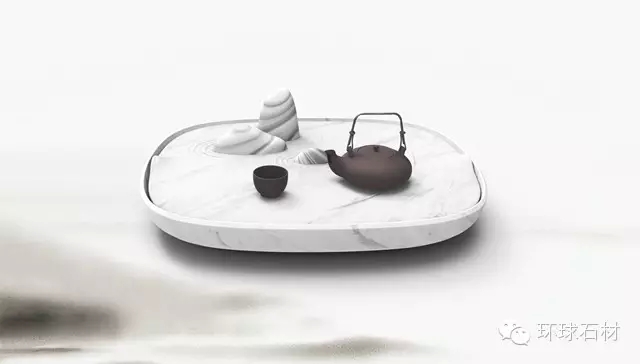 茶盤巧妙的利用大理石的加工可塑性,在小小的茶盤之上呈現山巒易水的禪意東方美學,石材本身的黑白紋理更是增添了水墨畫的意趣,以小見大,意境深遠,雅致怡情,恰到好處。