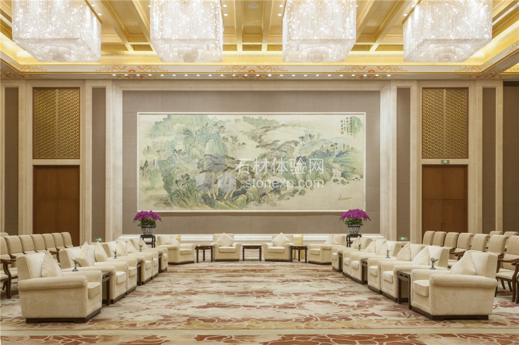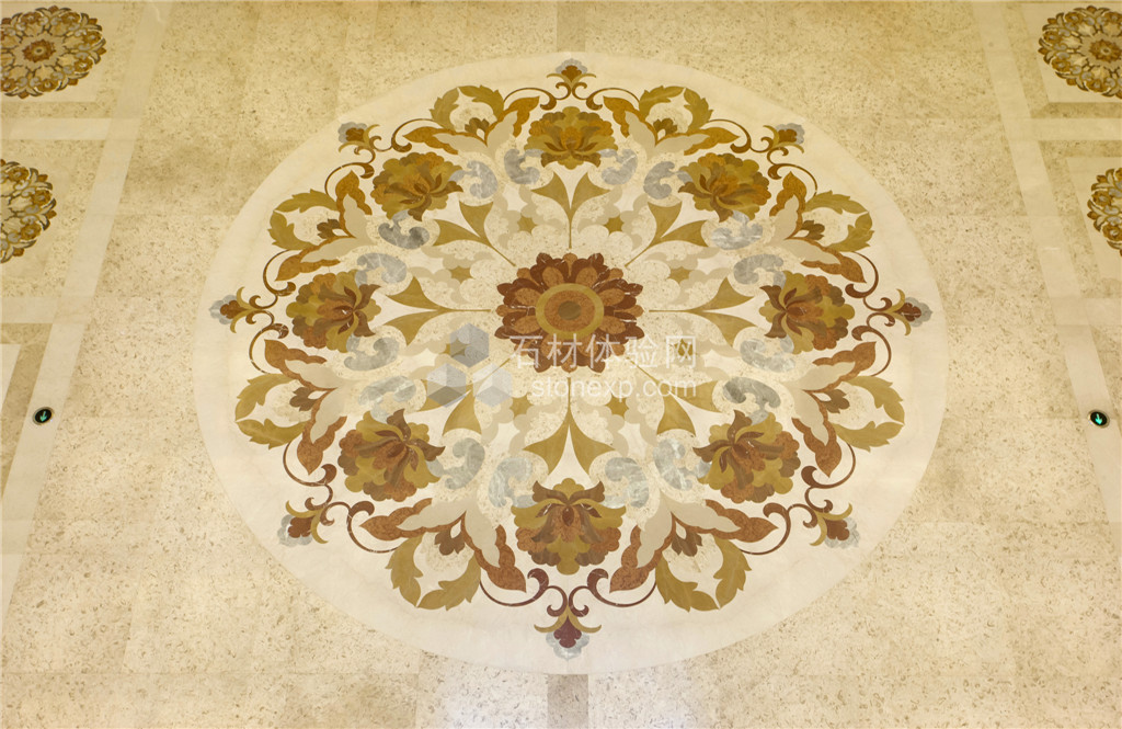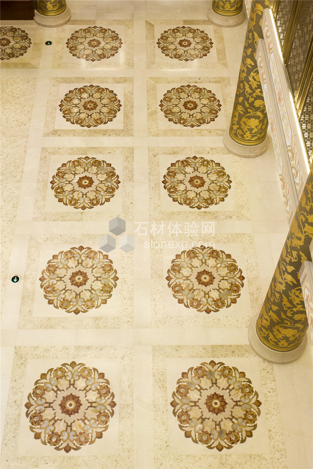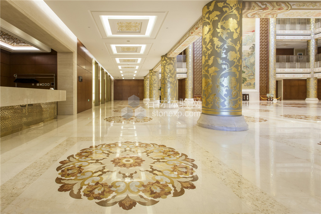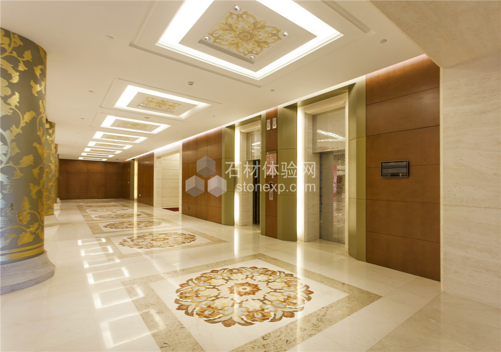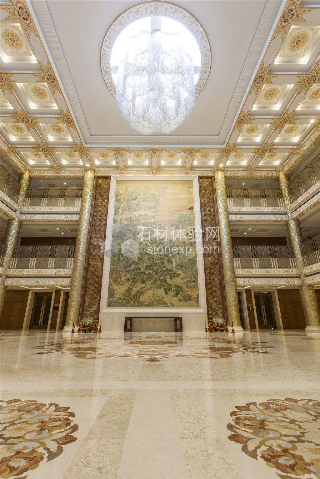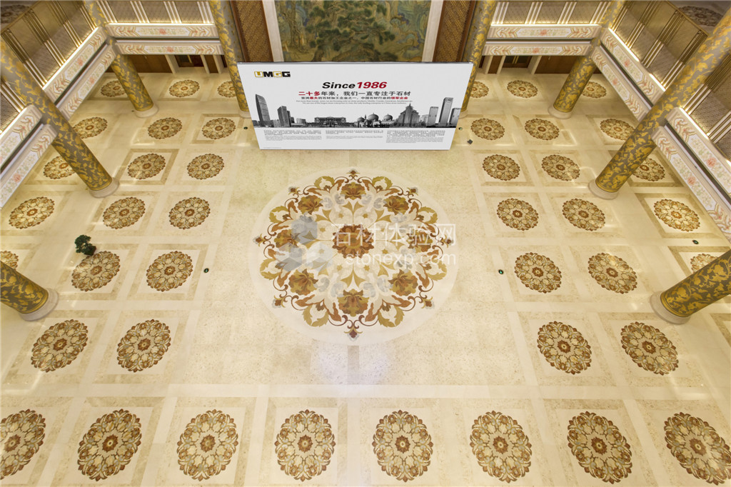 使用材料:羅馬洞石、燕山綠、淺啡網、帝王米黃、羅馬洞石、米黃洞石、西班牙米黃、月亮玉、山西銹石等