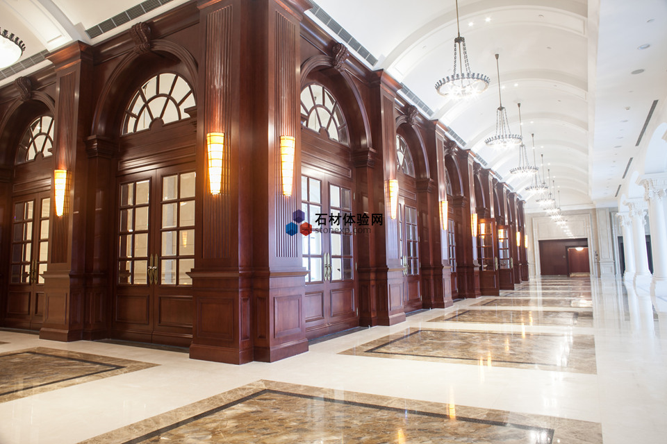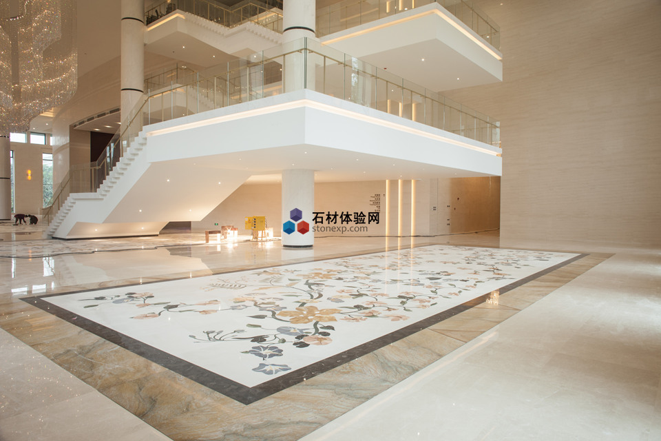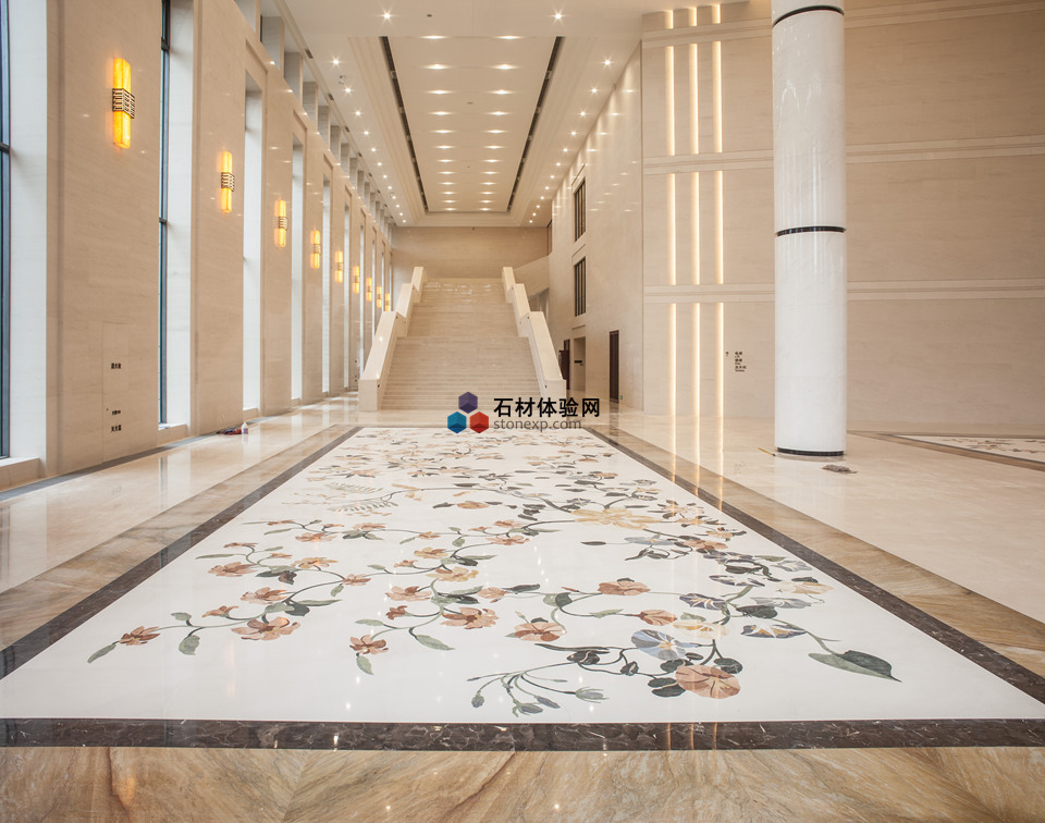 走進深圳研發基地,你可能會被滿滿的歐式風格所吸引。大面積的玻璃窗帶來了良好的采光效果,空曠的大堂盡顯了歐式風格的豪華大氣,給人舒適愜意之感,又不失浪漫的格調。環球石材參與設計了大堂拼花、地面和樓梯部分,帶給人不一樣的視覺盛宴