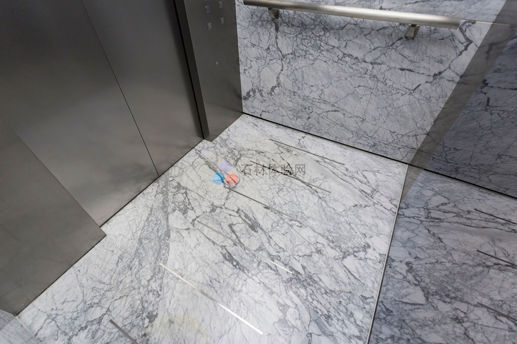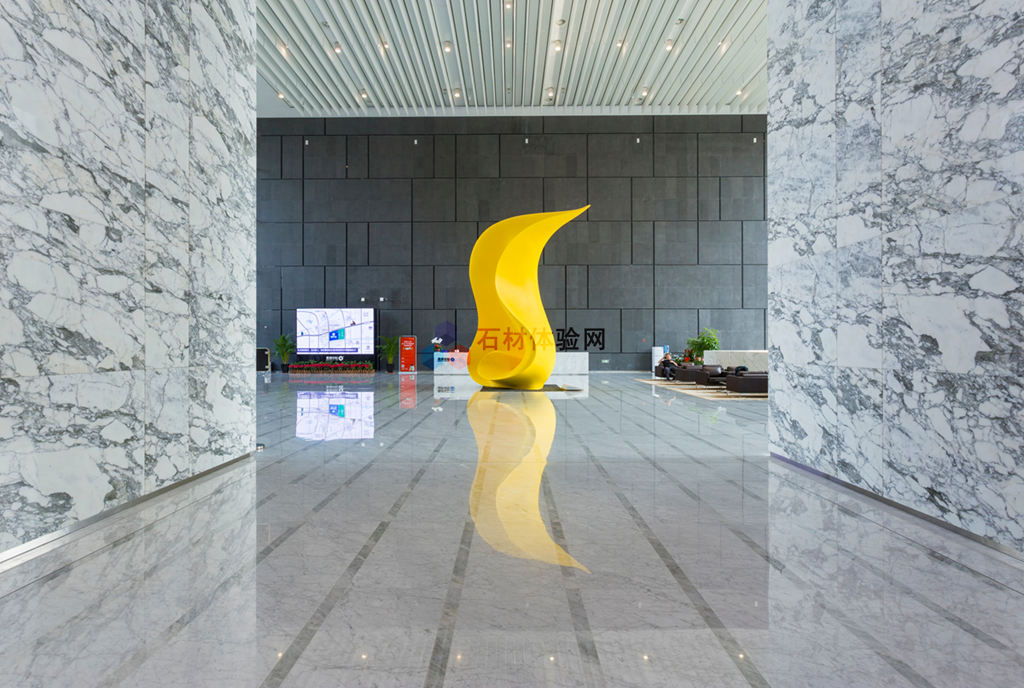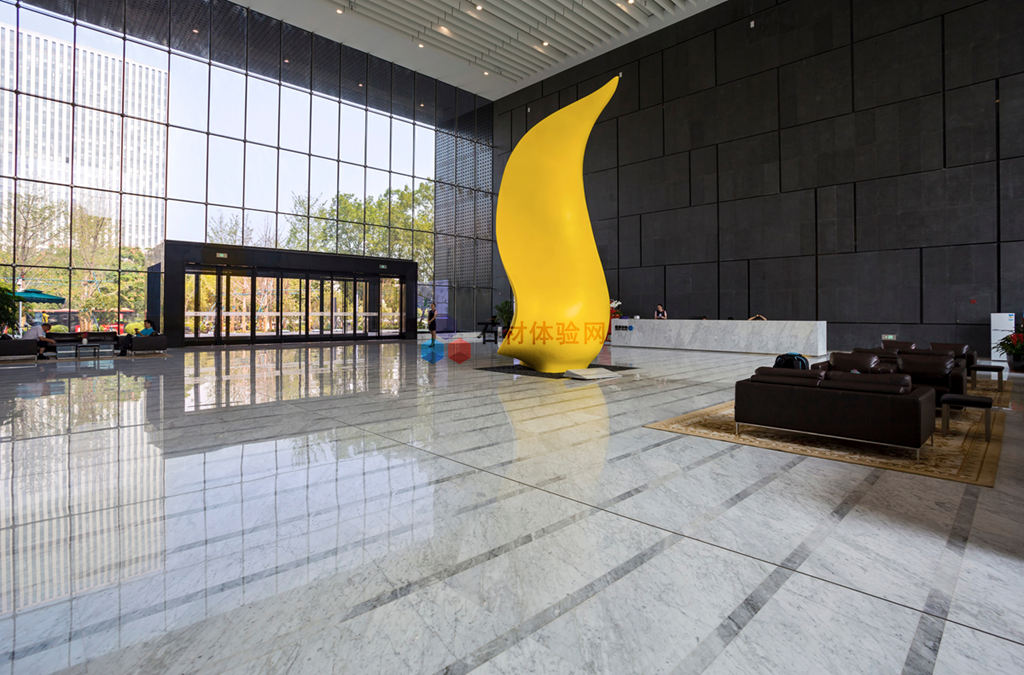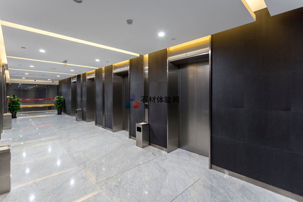 該工程大堂地面采用細紋雪花白(同種材料選用不同底色,一深一淺、一寬一窄搭配,營造出主次分明的格局感,同時也增強了空間在視覺上的延伸),墻面采用香格里拉黑火燒和水洗面,電梯廳墻面采用藍眼睛。首次與楷林置業(yè)合作,因為獨特的設(shè)計、過硬的產(chǎn)品質(zhì)量大獲好評,且我司承做的楷林中心8座將作為楷林置業(yè)自己的總部所在地。