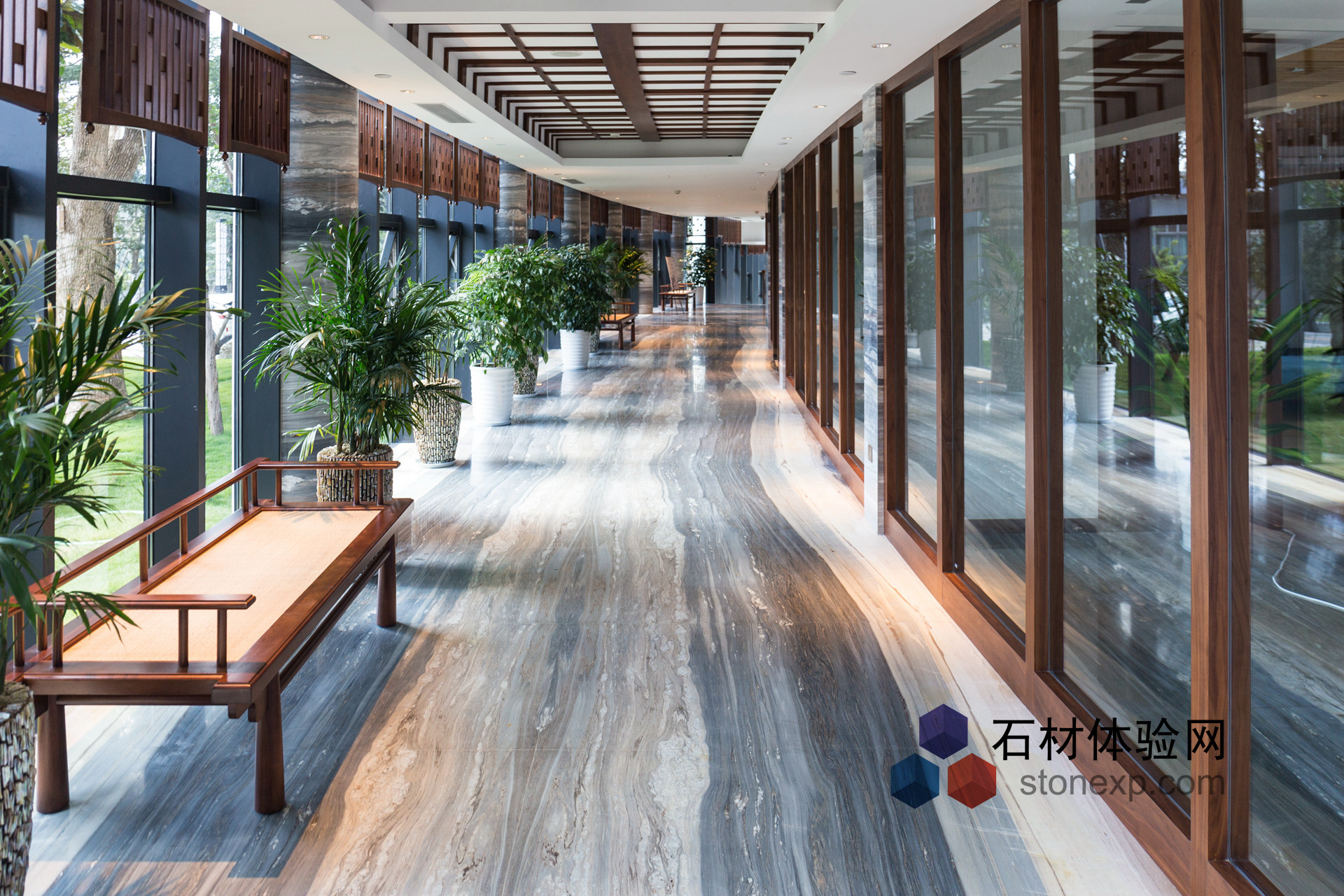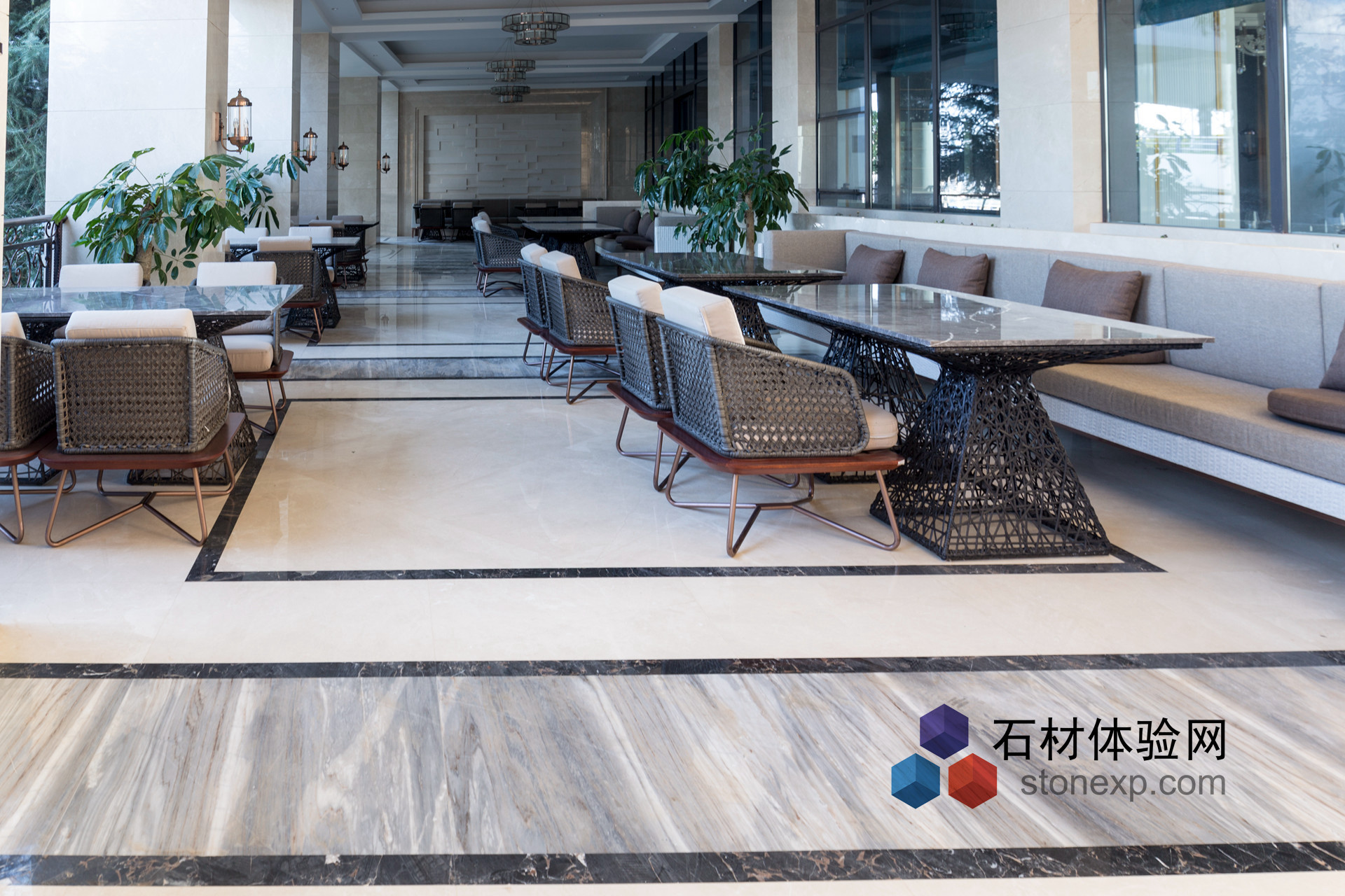 大理國際大酒店為世界首座白族超五星級酒店,坐落于大理州首府下關(guān)經(jīng)濟開發(fā)區(qū)洱海之濱,依山傍水,俯可瞰270平方公里洱海的壯闊全景,遠可眺蒼山白雪銀頂?shù)男沱愋燮妫c洱海公園、龍山公園相擁,是一方頤養(yǎng)心靈的理想之所。酒店內(nèi)一步一景,或民族,或現(xiàn)代,或時尚,或雅致,美景流動,漫步其間,愉悅隨心彌散,是以水岸園林生活為主題的奢華商務(wù)度假酒店。 早在2010年“中國國際空間環(huán)境藝術(shù)設(shè)計大賽”中,其憑借獨特的空間設(shè)計就獲得亞太“筑巢獎”金獎。該項目被列為云南省旅游業(yè)第一個重點項目。酒店建筑體現(xiàn)白族建筑特色,整個布局宛如玉龍,與龍脈上“二龍戲珠”概念相契合,體現(xiàn)龍脈的精神所在! 石材總體色調(diào):灰色(用料藍金沙、淺云灰居多) 石材品種:藍金砂、雅典娜灰、黑金花、雪花白、雅士白、比薩灰、世紀(jì)米黃、奧巴馬木紋、淺云灰 |