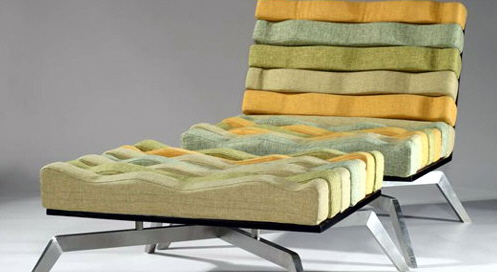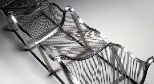 毯(凳)曲面構成,制造漂浮的視覺印象,琴弦般的鋼絲增加韻律感。有幾種組合方式。