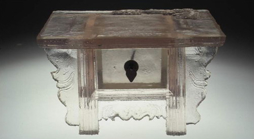 福柜 (小儲物柜)用老家具翻模采用透明樹脂材料置換老家具材料,刻意的粗糙似乎在嘲諷脆弱的琉璃。