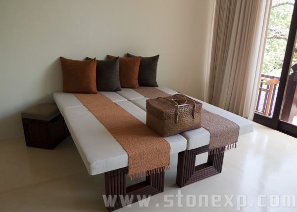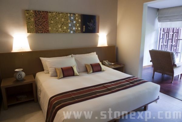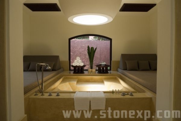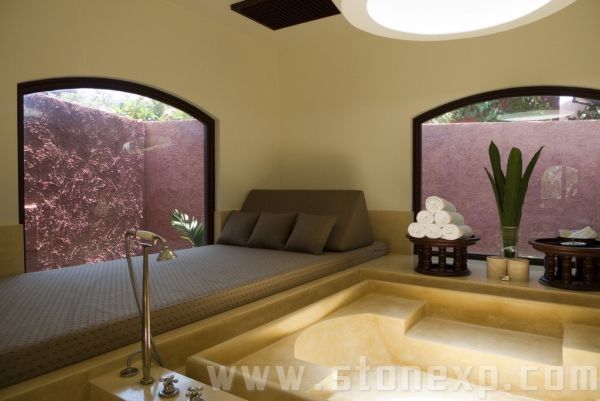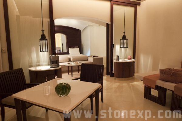 對(duì)于有眼光的客人而言,客房是很有特色的,帶有自己的私人兩層游泳池和豪華的獨(dú)家休閑亭閣,其內(nèi)免費(fèi)供應(yīng)歐式早餐和雞尾酒晚餐。室內(nèi)裝修非常奢華,大量采用了天然石材,例如造型獨(dú)特的洗手池和浴池。