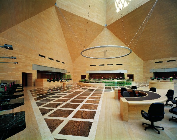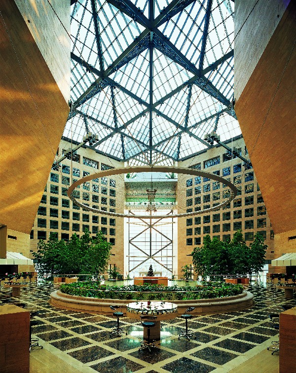 該項目是我院與華裔國際建筑大師貝聿銘先生合作完成的建筑精品。總建筑面積為174896平方米,地上15層,地下4層,建筑高度57.40米。作為銀行辦公建筑,無論建筑細節的處理、結構的復雜性,還是建筑樓宇智能化程度,本工程已達到國際最高級別的建筑配置。