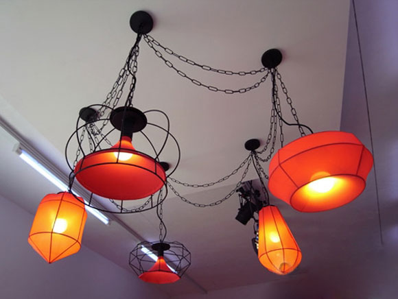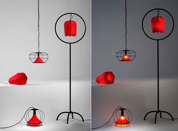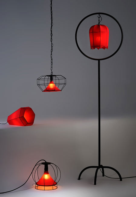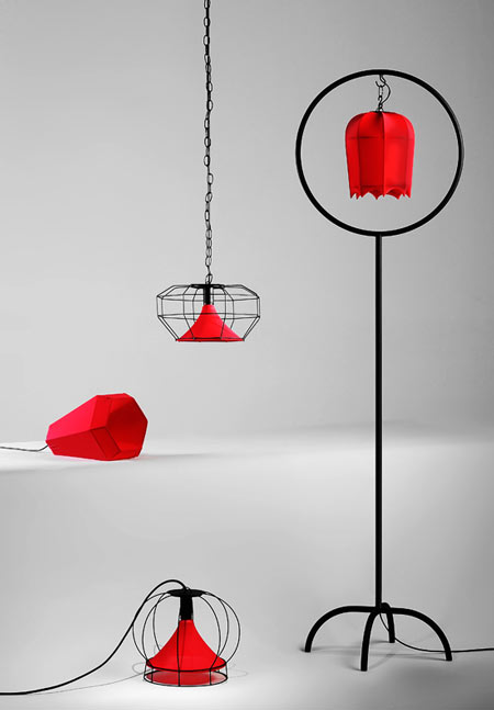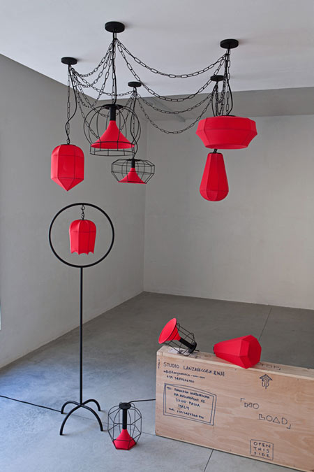 意大利Lanzavecchia-Wai在新加坡的工作室燈具作品Scaffold 燈在4月的2010米蘭家具展中展出,紅色布藝搭配金屬黑色。