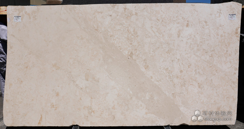 材質(zhì)特征:米黃底色帶粉紅色花紋, 同時(shí)有白色貝殼少量分布