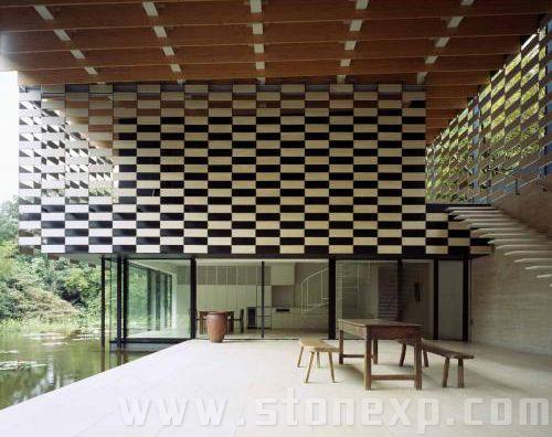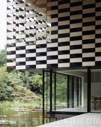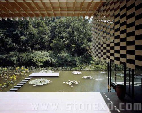 Kuma最近的工程Lotus House,在透明、朦朧理念的引導下,這座房子的圍墻成有許多的“洞”,這樣,光線和空氣在這座房子里可以更任意的穿梭,實現了與大自然融合。它的設計師Kuma在介紹這座房子時也說“自然框架,貼近自然”。