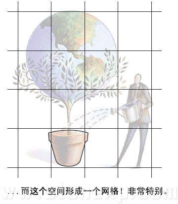 圖中是一個人在澆灌地球,對讀者來說,它是線條,紋理和有趣的形狀的集合,去掉橫平豎直的網格,下面我們看看如何跟著你的直覺去設計。