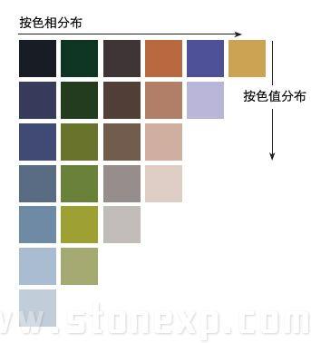用吸管工具從上述處理過的圖片進行取色,將所取得的色塊通過色相及色值來歸類。